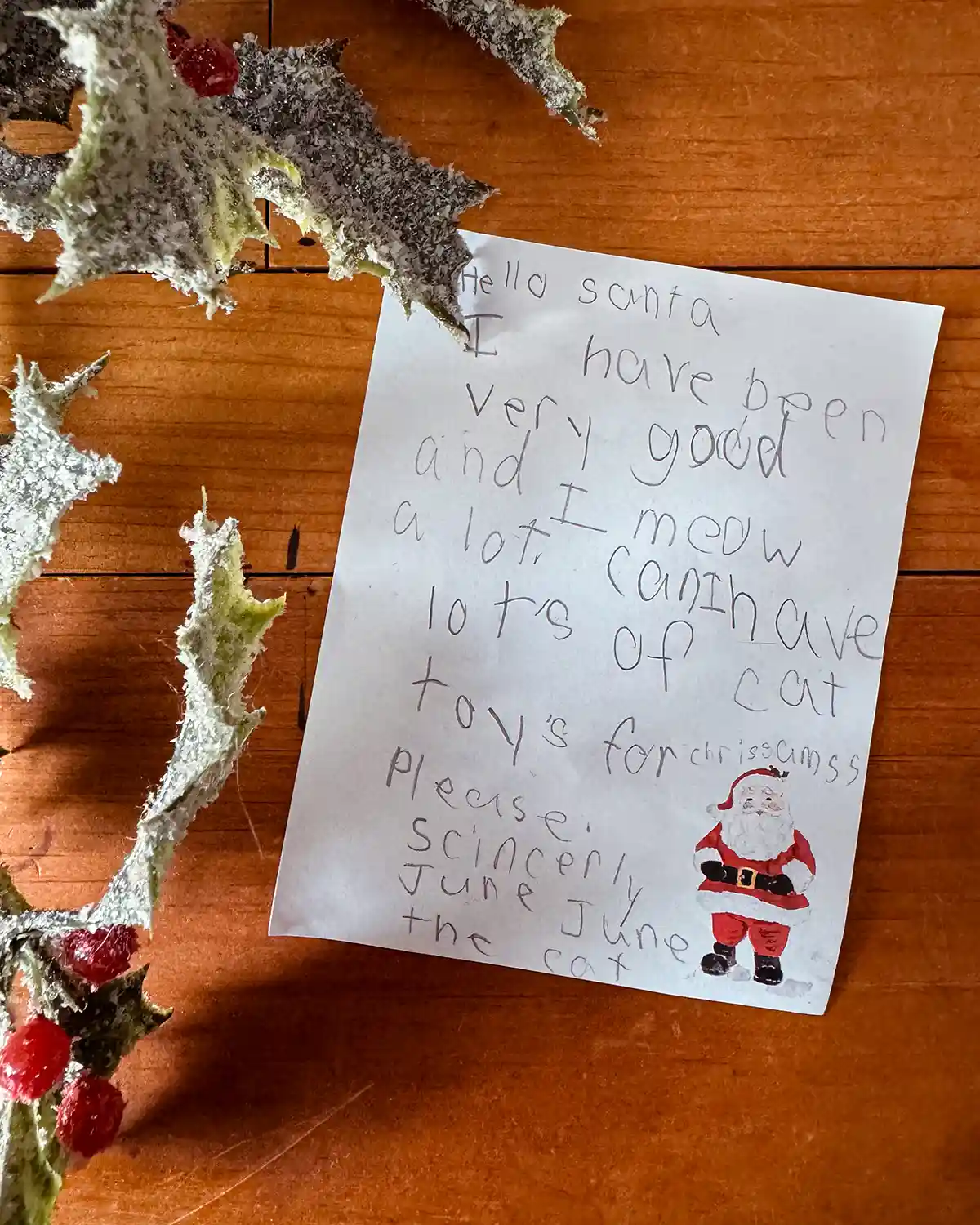 Such a fun activity that I never miss with our kids. This year, letter writing was extra fun because our youngest is now four and can articulate exactly what she wants. Our eldest writes her own, which is always fun. She even wrote a letter to Santa from our cat, June June, who she feels gets snubbed by Santa every year. The dog gets a toy, why not the cat? I tell her it’s because he’s an annoying cat, but she disagrees.