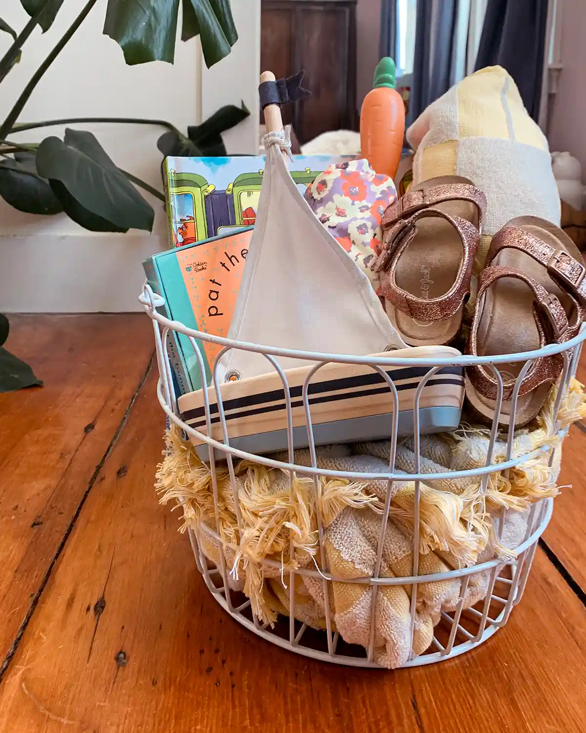 My biggest tip for achieving the minimalist Easter basket is to think about what your family values and what your children need or could use to enhance those values. For example, our family values time spent outdoors swimming in the river every summer. I always include swimsuits and sandals in their Easter baskets because those items support our family values and are things my kids need every year. Another example is our family values books and reading. We spend a lot of time reading together every day and have a large bookcase dedicated to children’s books that we intend to fill. Our kids rarely get new books outside of their birthdays and holidays, so their Easter baskets always include a couple of new books for the shelf.