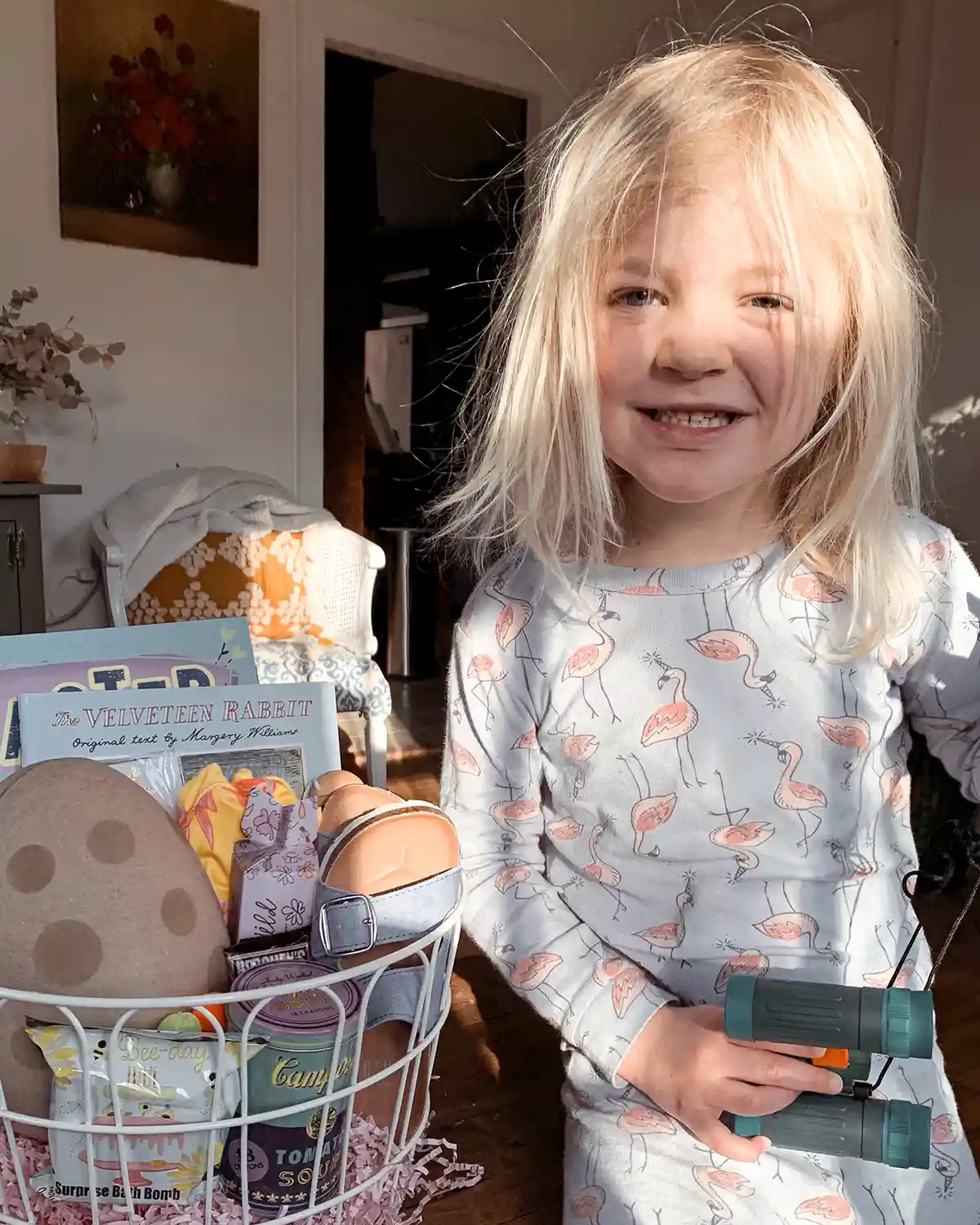 There are always seasonal items that support our family values and are great to have around for the kids. These items are great additions to an Easter basket. One year Rowan was super interested in bugs so we put “The Big Book of Bugs” and items for bug collecting in her Easter basket. She still uses those items years later and they have enhanced her love of nature. Another year I gave her some water toys like diving rings, squirters, and a new pair of goggles when she was learning how to swim. This category is easy to scale with older kids who grow out of the stuffies and small toys era pretty quickly.